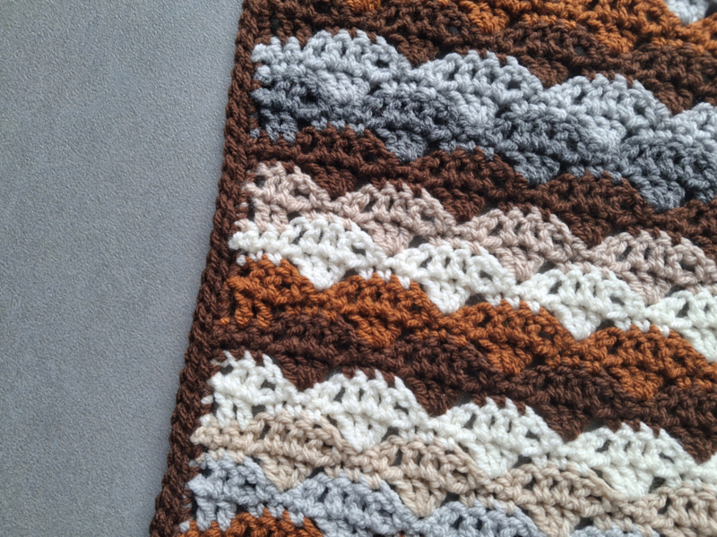 OverzichtHeerlijke plaid met een schelpenmotief. Voor de kille voorjaarsavonden, of de lange, koude winter.